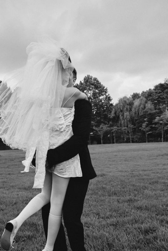 예비신부는 미니 드레스로 사랑스럽게,