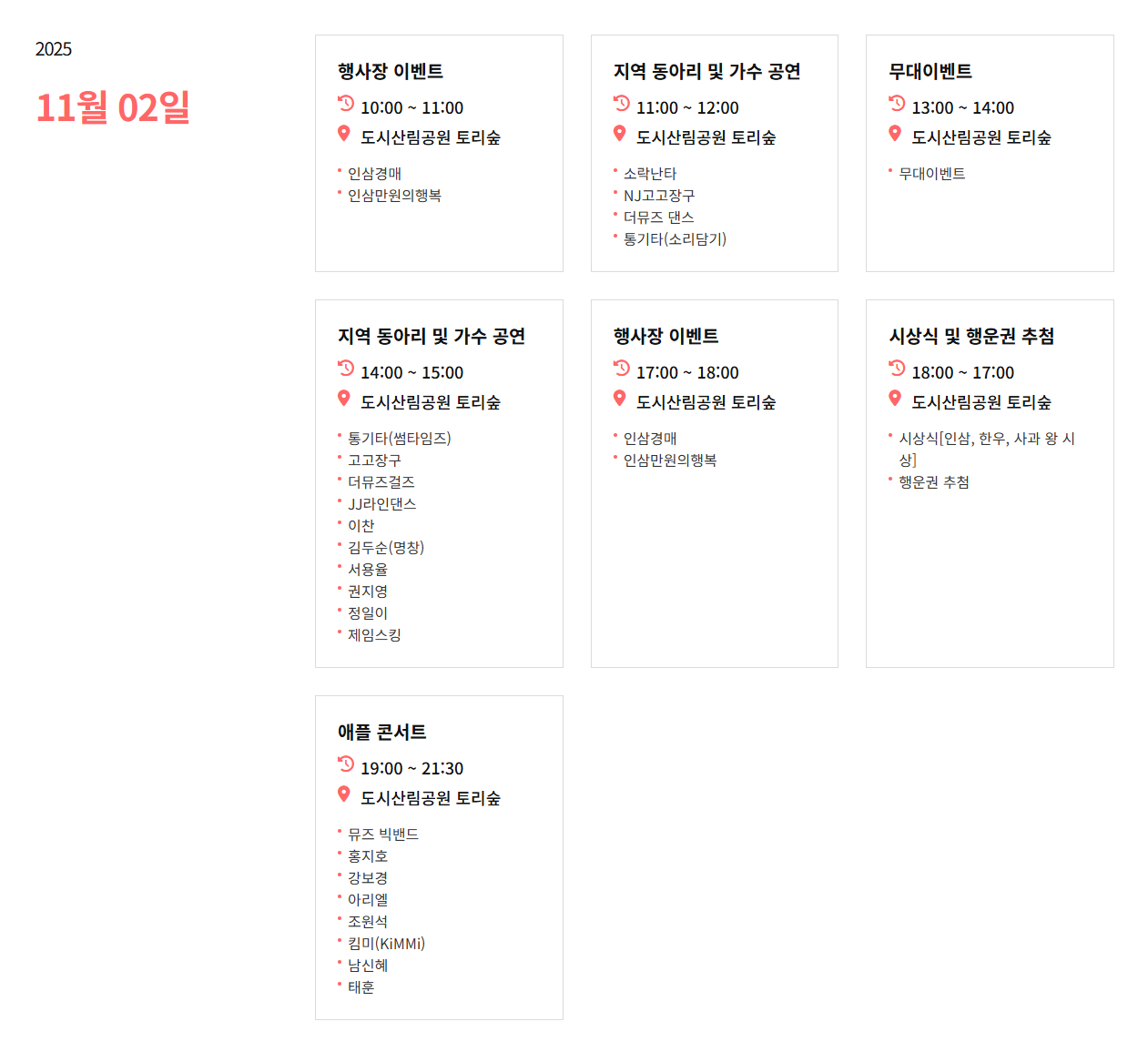 - 기간 : 2025년 10월 30일(목) ~ 11월 2일(일) (4일간)