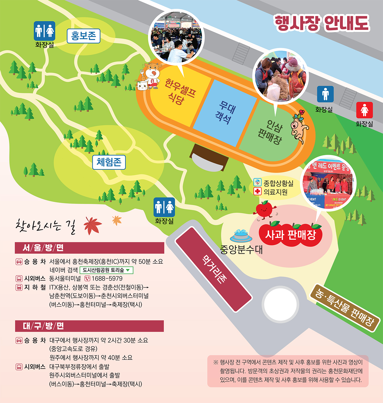 - 홍천 6년근 인삼 : 전국 최고 품질의 인삼을 축제 한정 특가로 만나볼 수 있음.