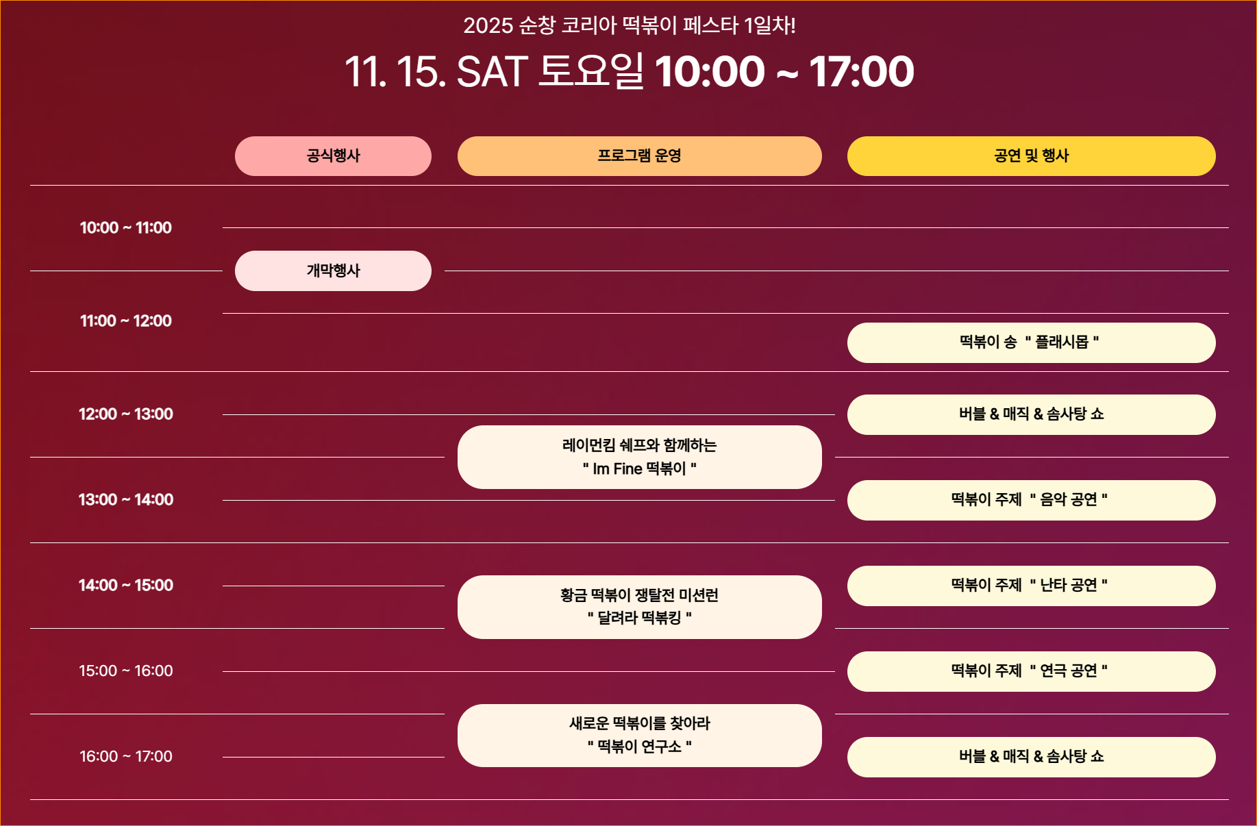 - 행사명: 2025 순창 코리아 떡볶이 페스타