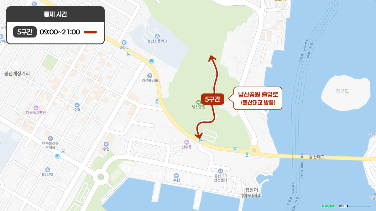- 핵심 구역: 이순신광장 및 장군도 앞 해상